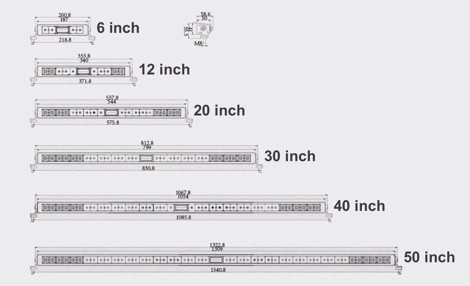 Multiple lengths to suit various install positions (roof, bumper, grille, etc.)